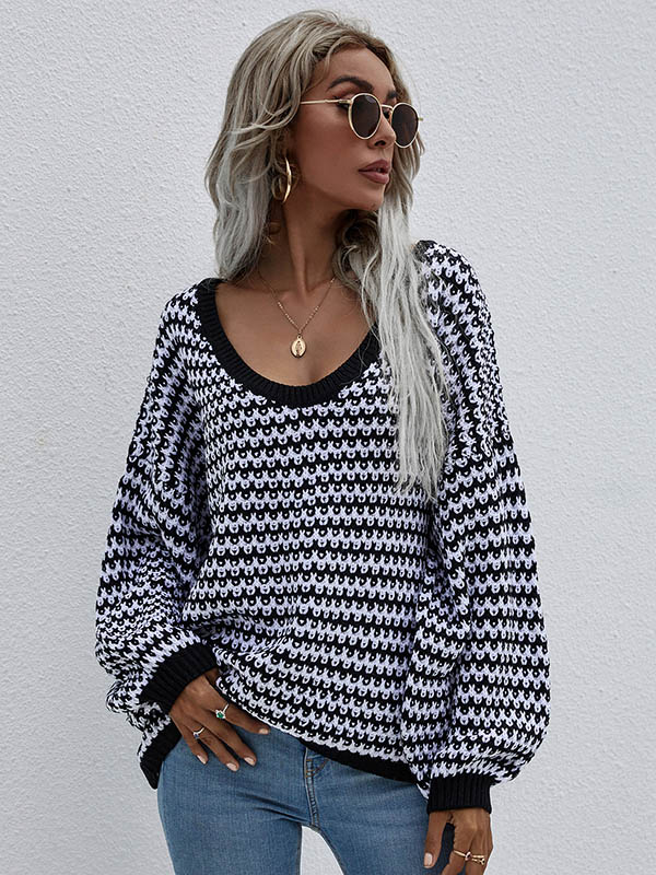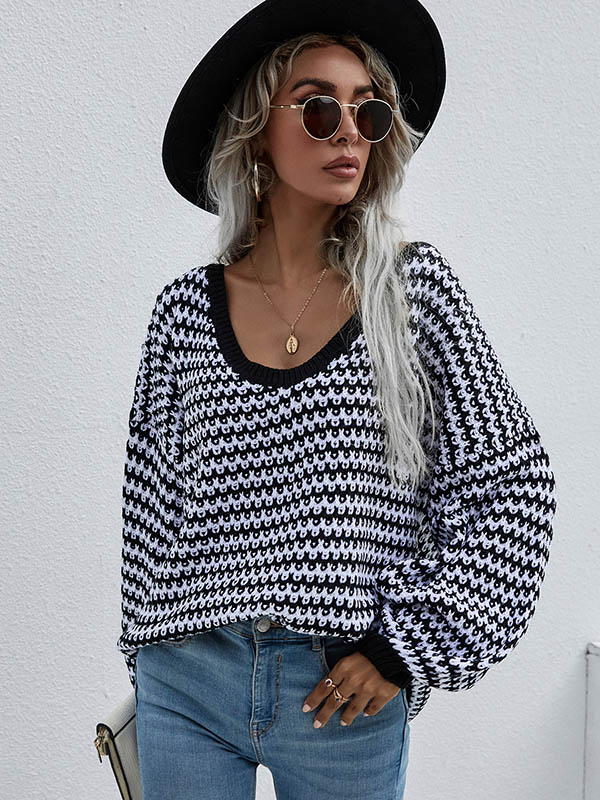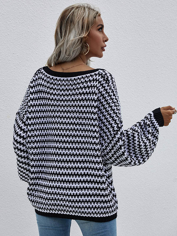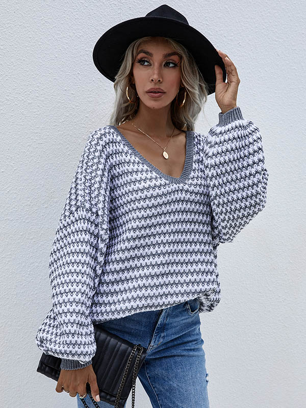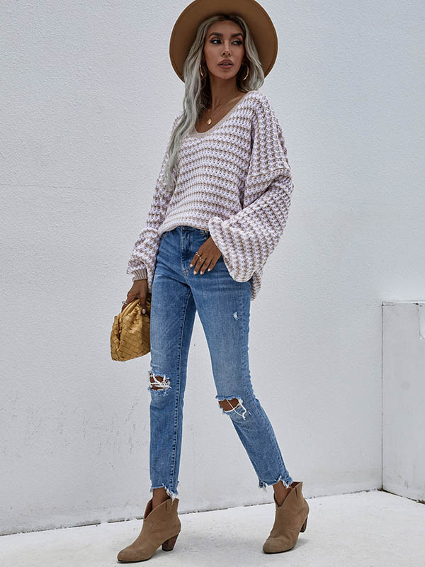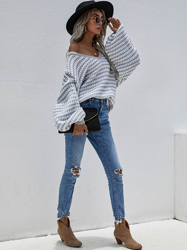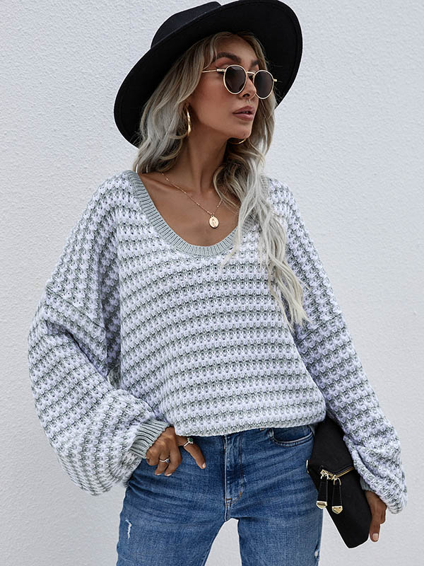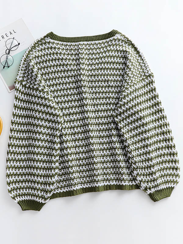 flowersverse Original Loose Striped 8 Colors V-Neck Long Sleeves Sweater Top