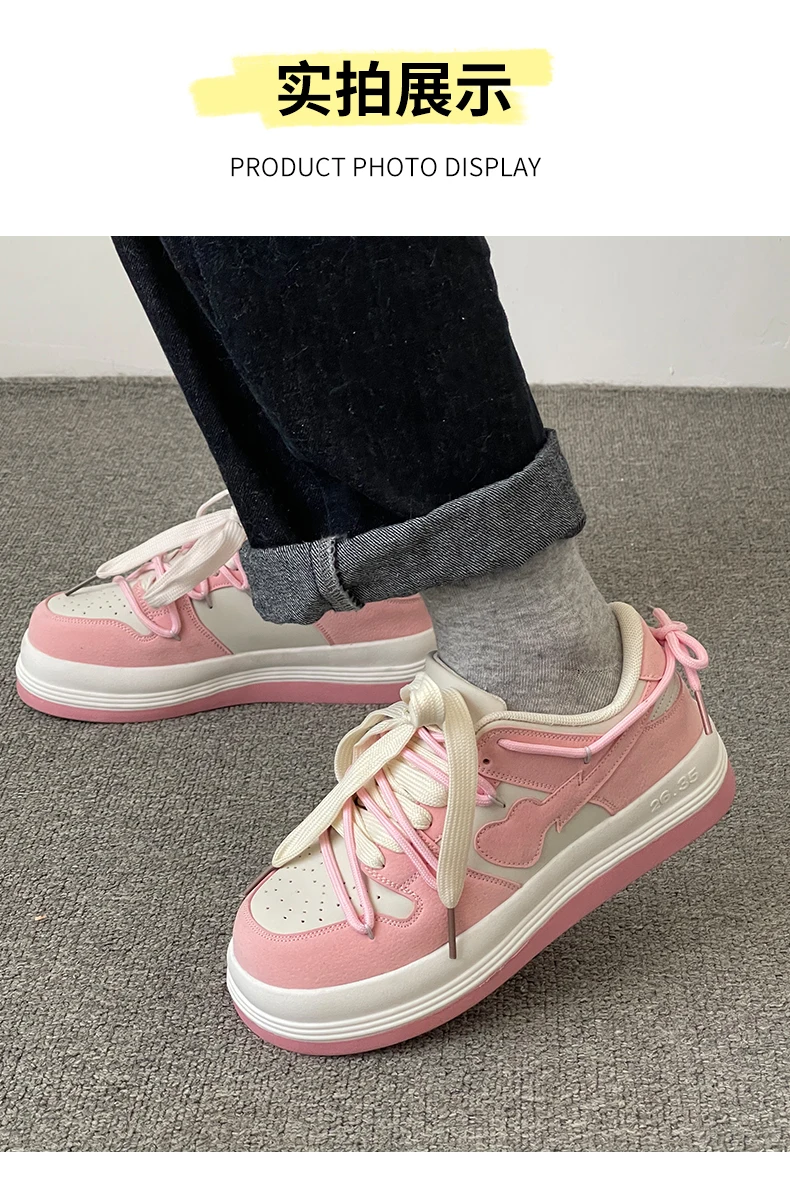 Thanksgiving Amozae Pink Women Vulcanized Shoes Chunky Sneakers Women Flats New Design Sport Shoes Lace Up Women Shoes Fashion Walking Sneakers