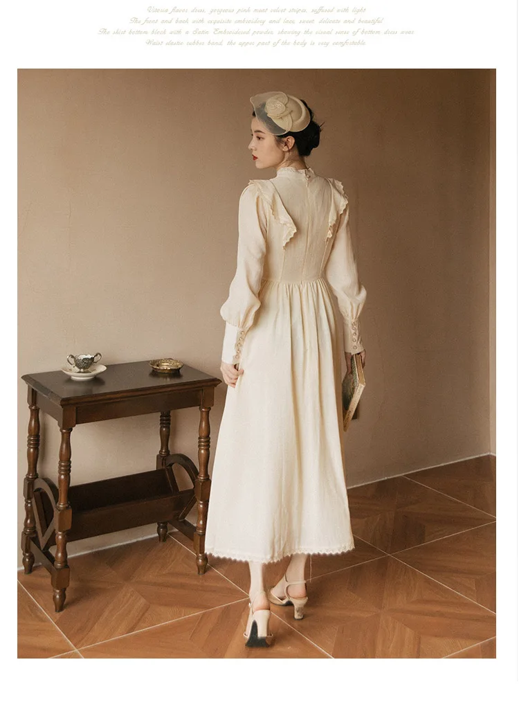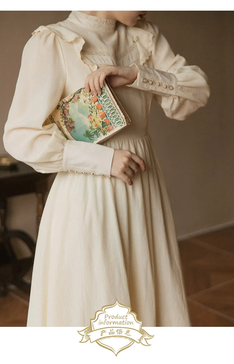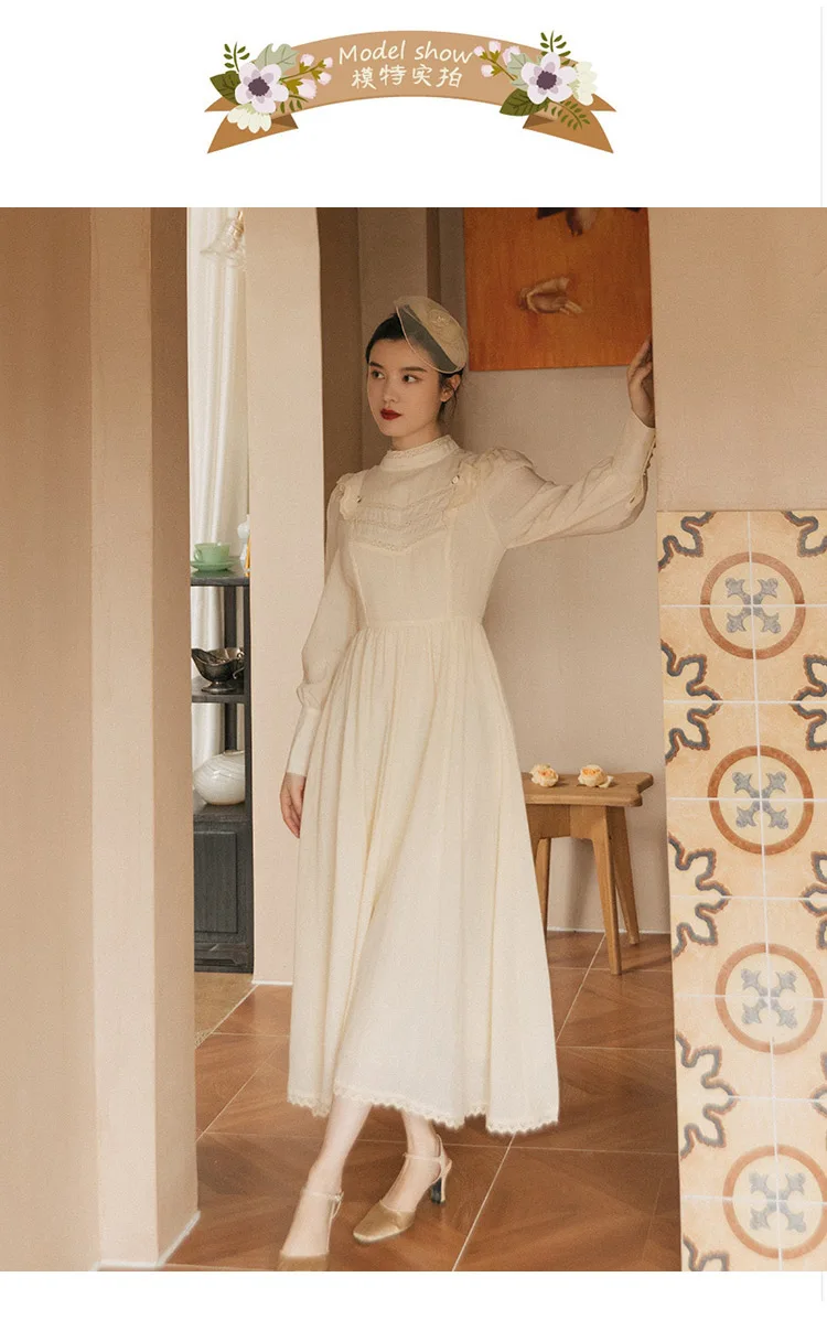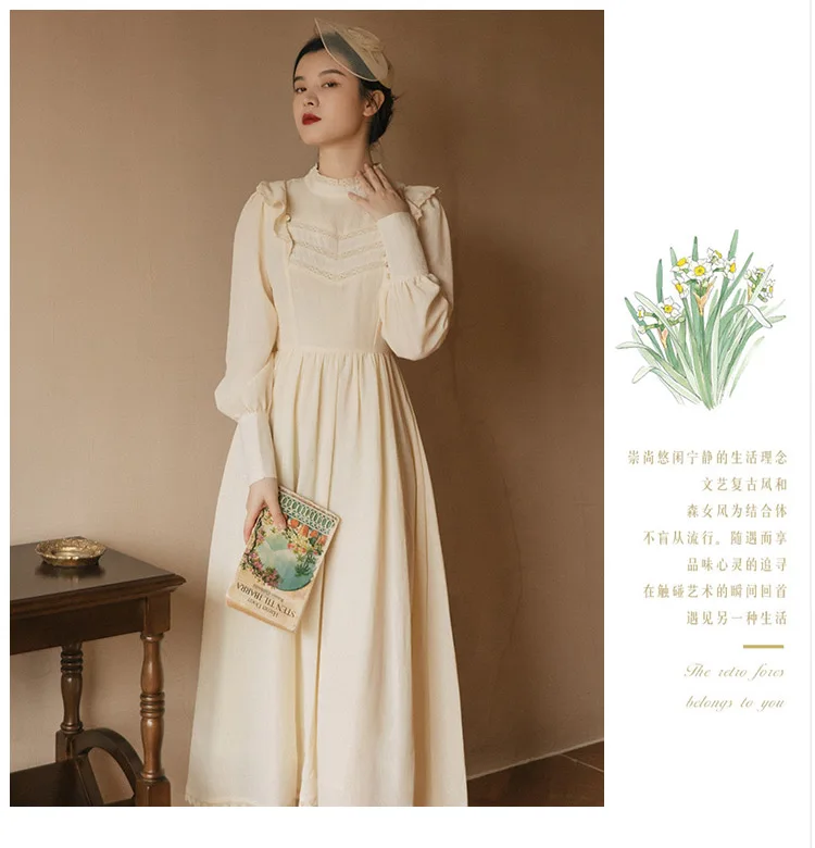 flowersverse Back to school Retro Royal Style Lady Dress Vintage Mori Girl Lantern Sleeve Stand Collar Elegant Woman Maxi Dresses Vestido Manga Larga