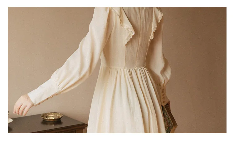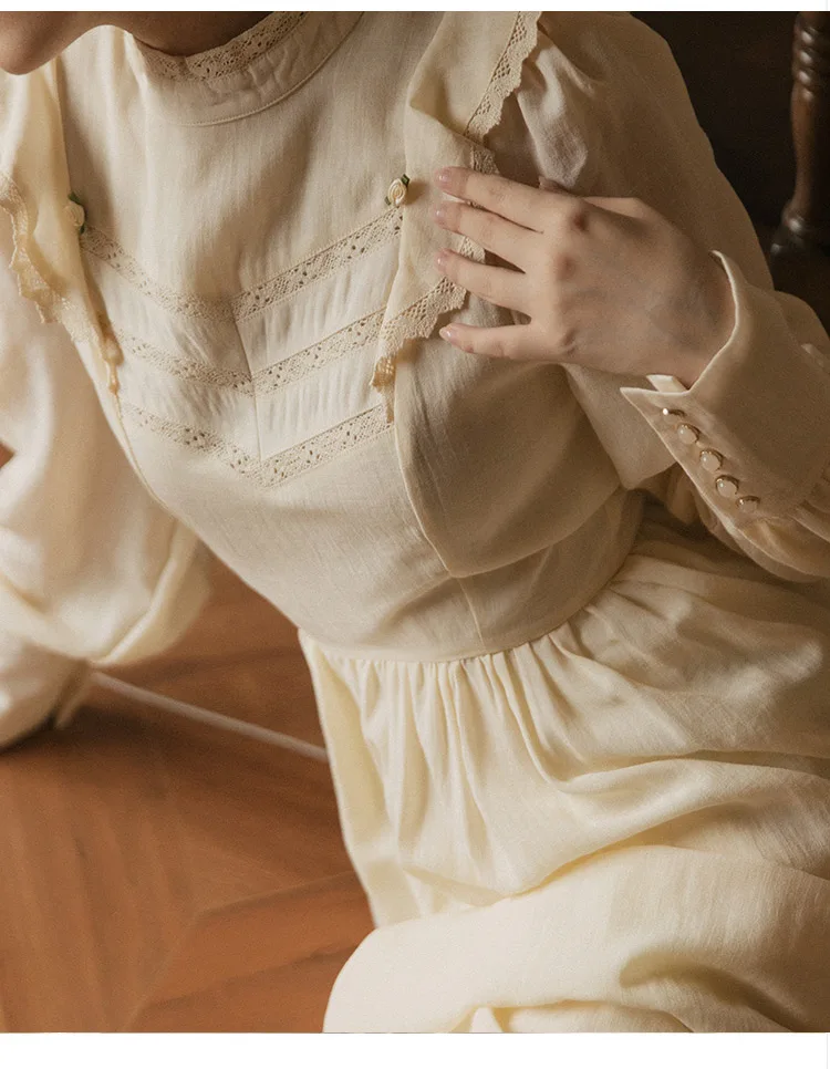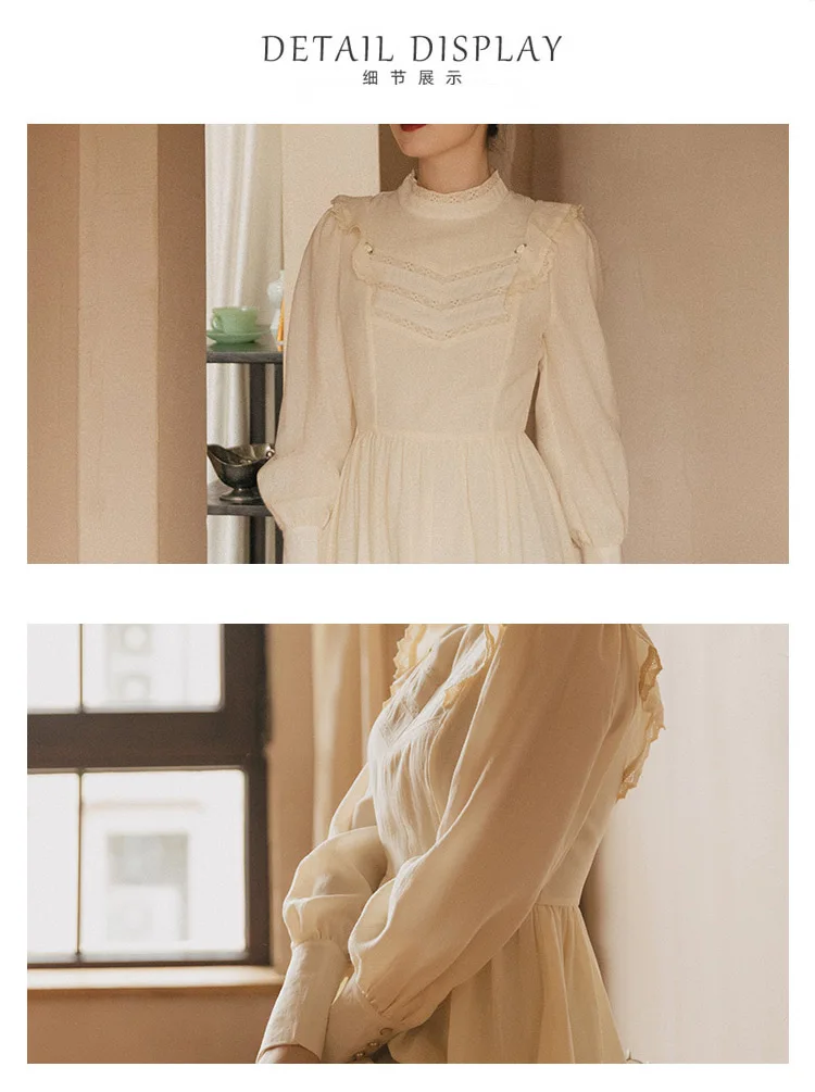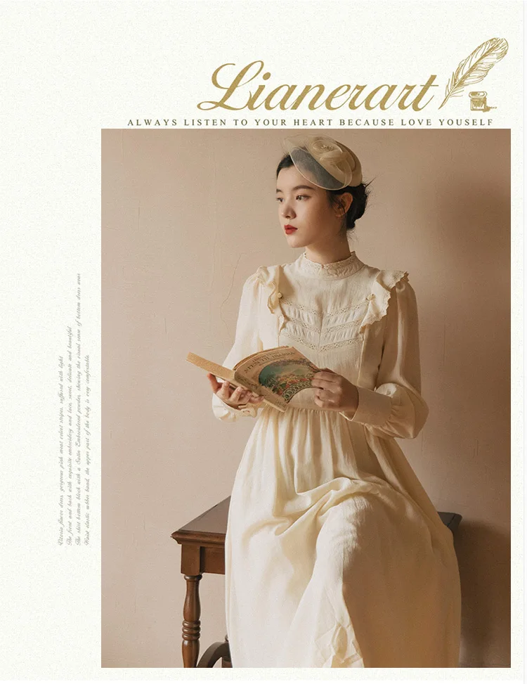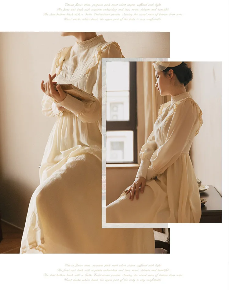 flowersverse Back to school Retro Royal Style Lady Dress Vintage Mori Girl Lantern Sleeve Stand Collar Elegant Woman Maxi Dresses Vestido Manga Larga