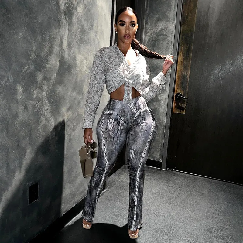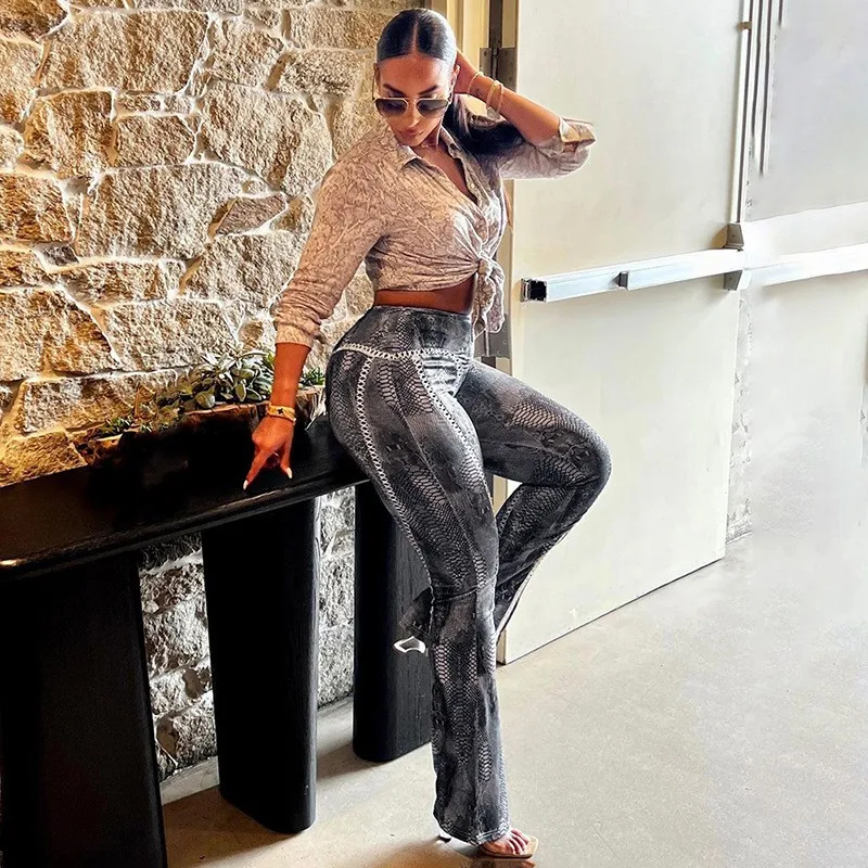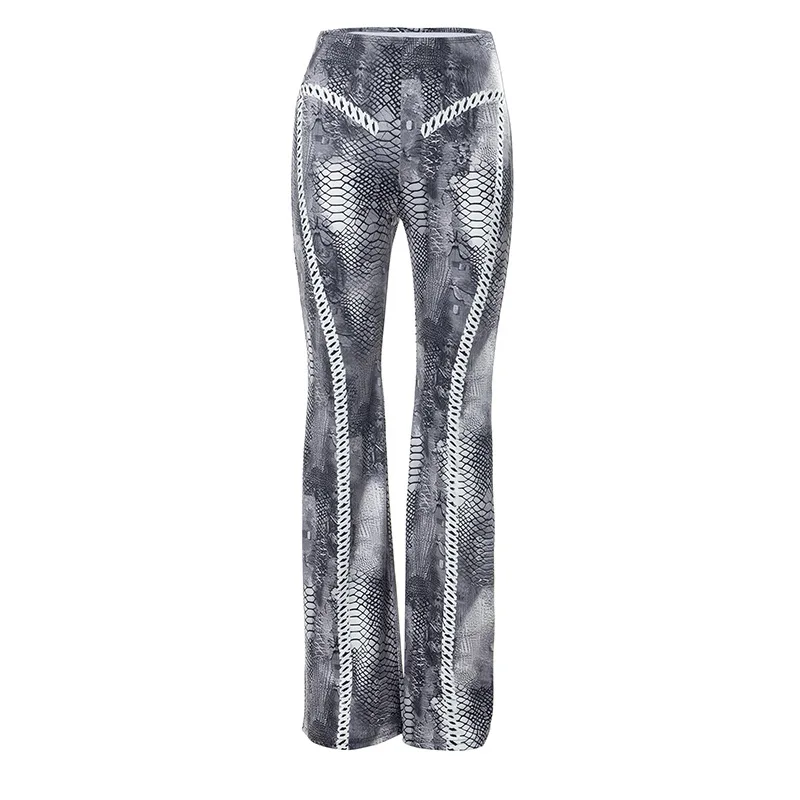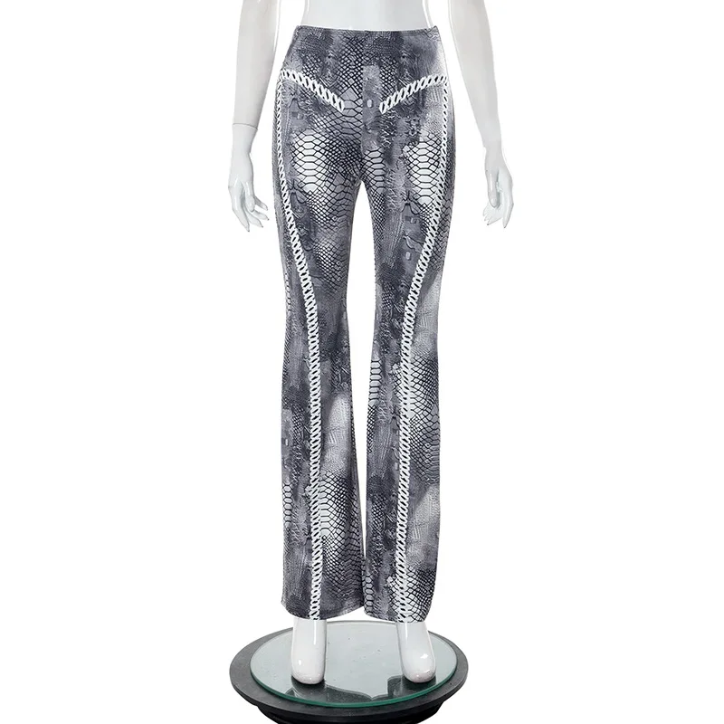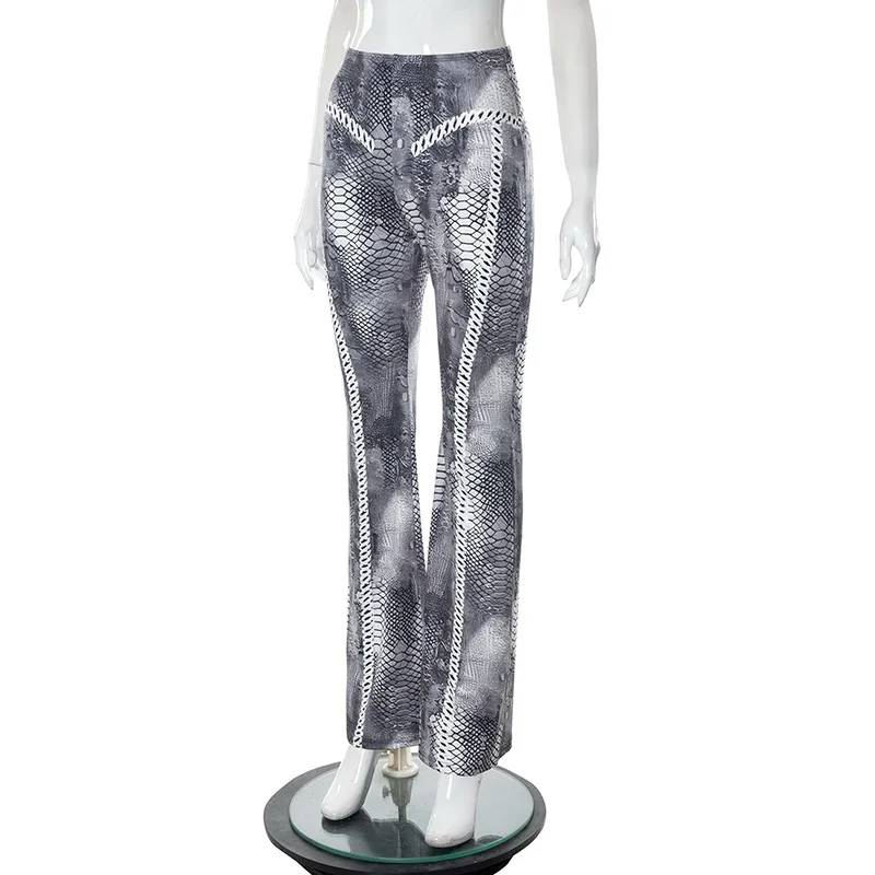 Serpentine Printed Trousers Women Stunning High Elastic Waist Flared Pants Summer Female Bottoms Harajuku Streetwear