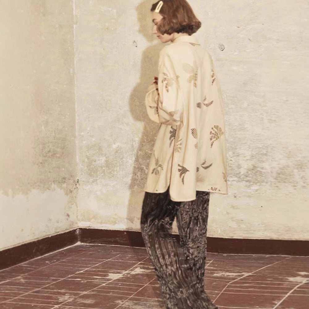 Siyuan I * C niche linen hand-embroidered hollow design long-sleeved shirt women's summer new loose top 7779
