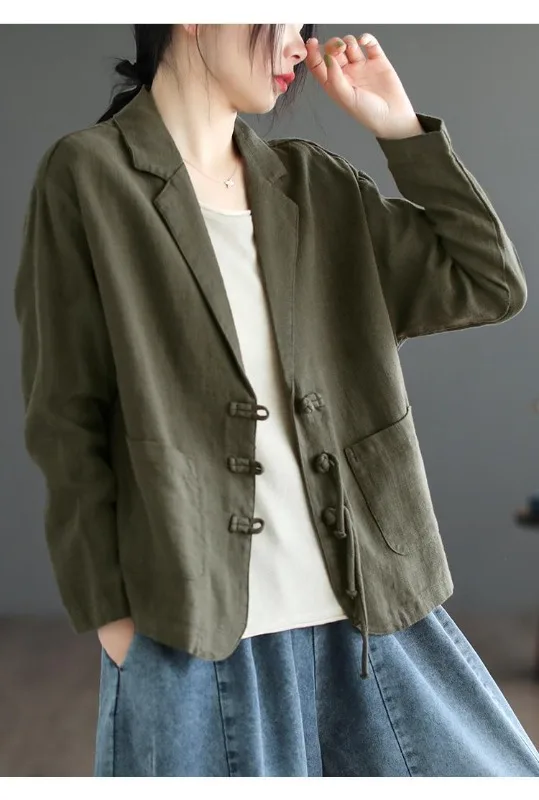 flowersverse Thin Blazer Women Coats Women Clothing Fashion Clothes Casual Vintage Spring Elegant Cotton Linen Streetwear Autumn Comfortable