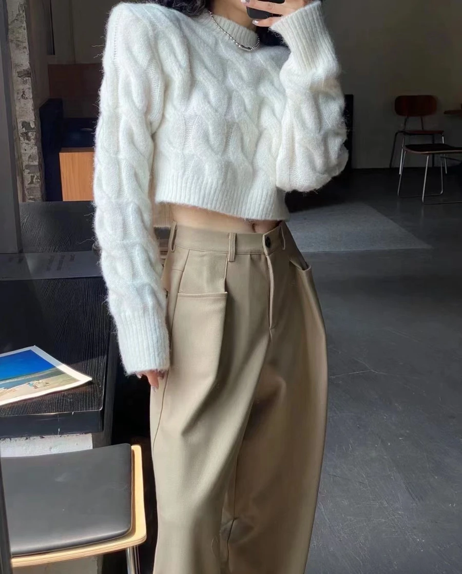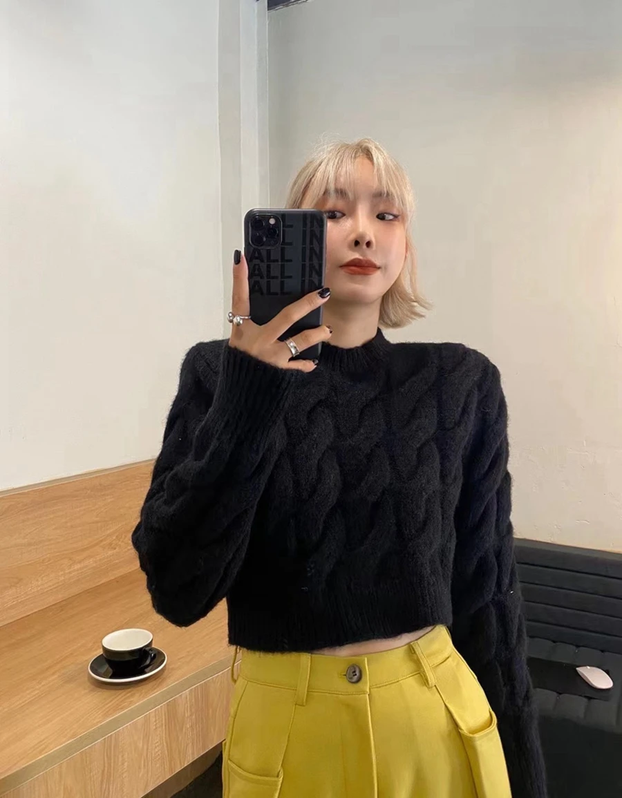 flowersverse Autumn Winter Sweater Women Long Sleeve Korean Style Crop Knit Ladies Jumpers Fashion Sweaters Pullover Chic