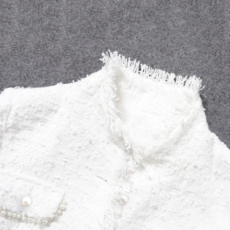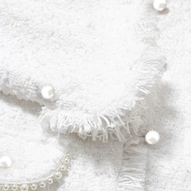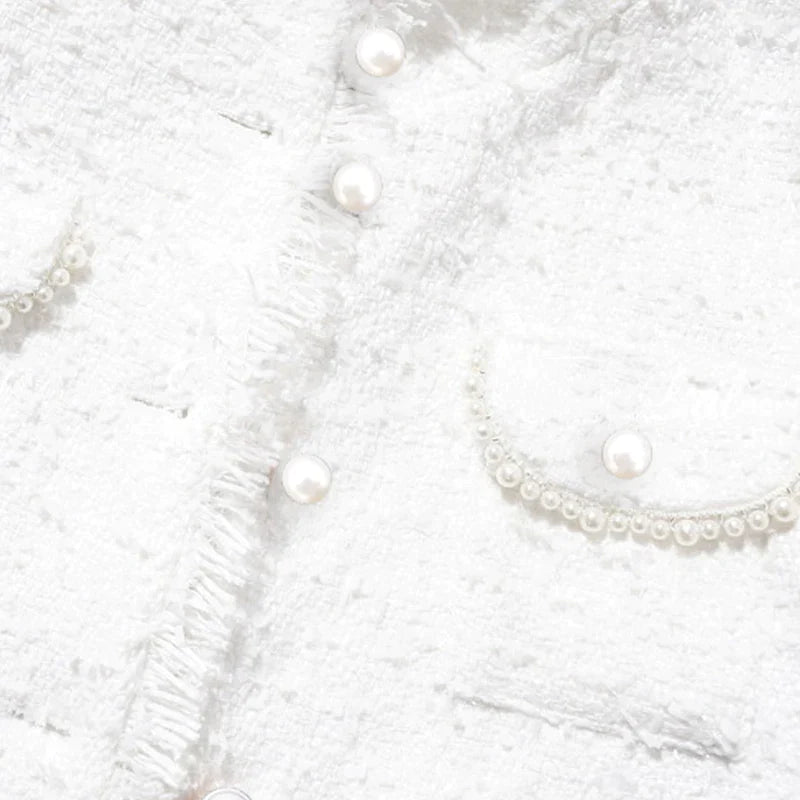 flowersverse tweed jacket White Pearl inlaid pocket autumn /winter women's jacket new slim slimming tweed ladies jacket coat