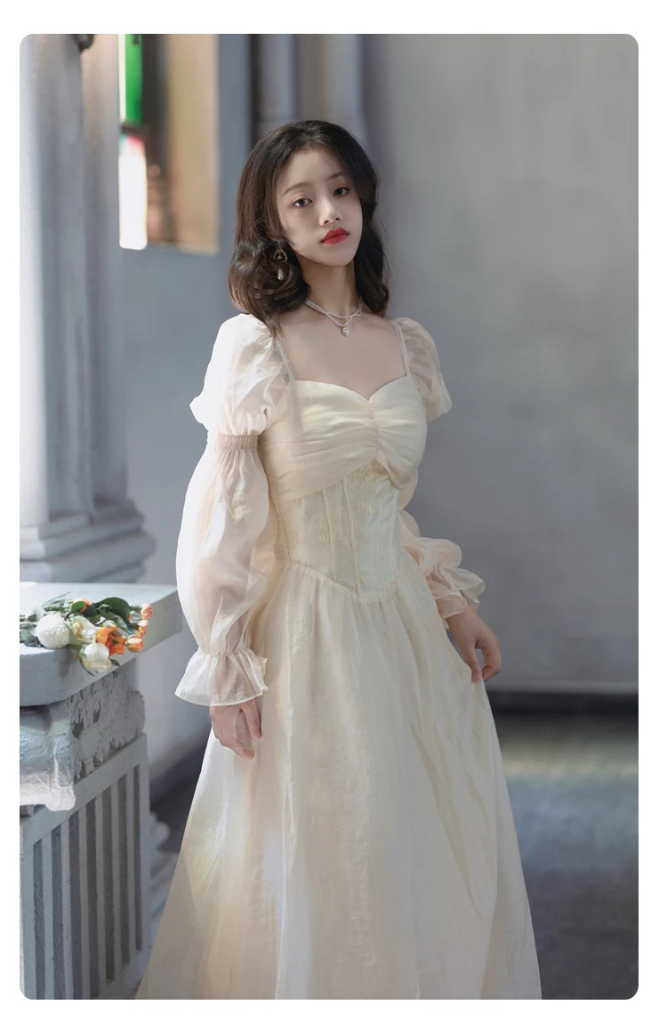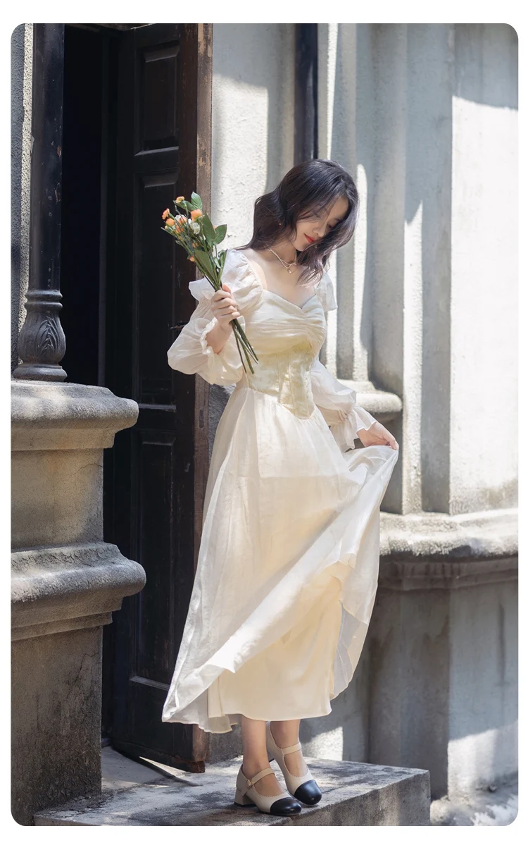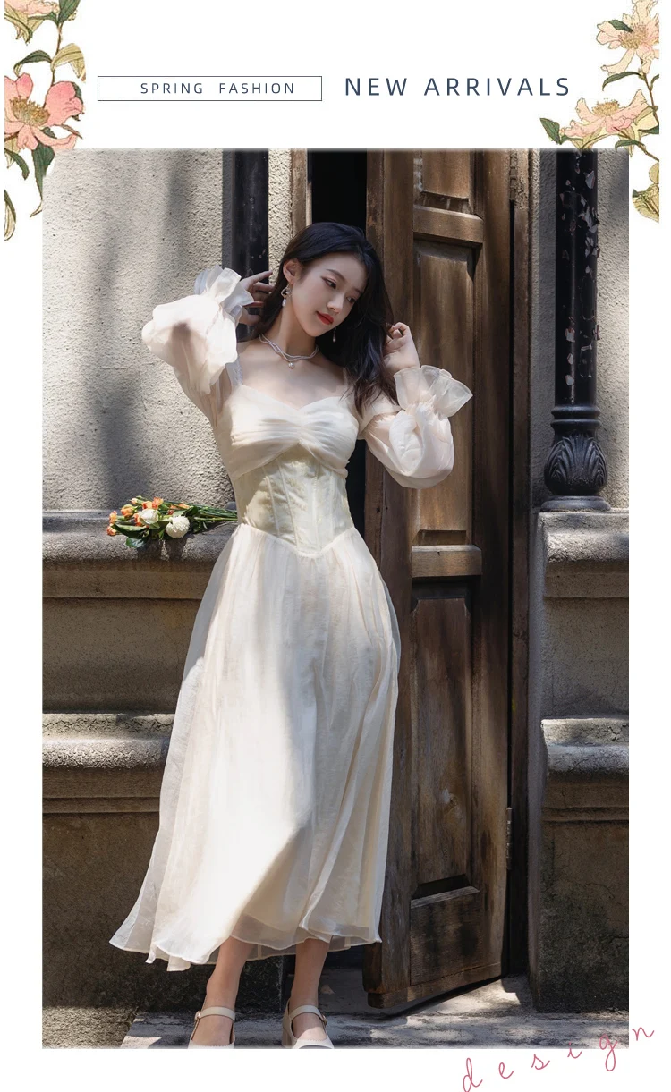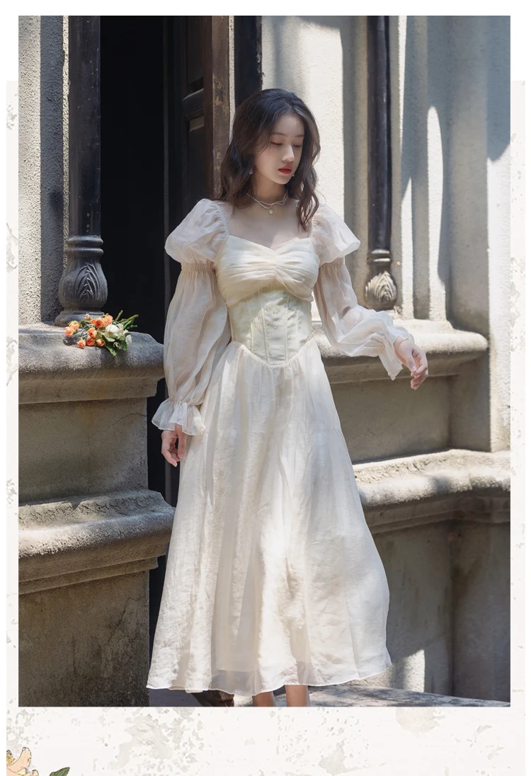 flowersverse Back to school Vintage Chic Woman Fairy Dress Romantic Retro French Style Jacquard Floral Flare Sleeve Royal Princess Dresses Vestido Festa