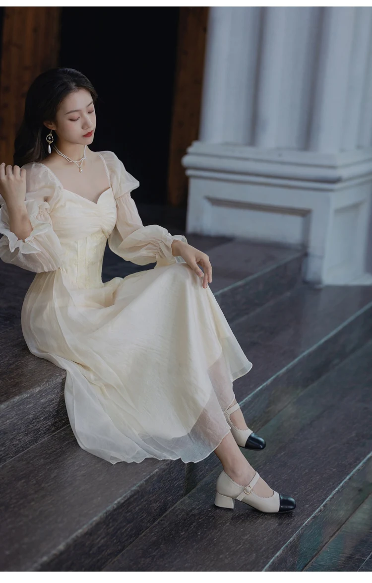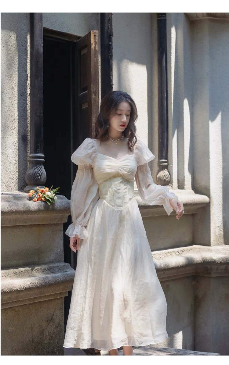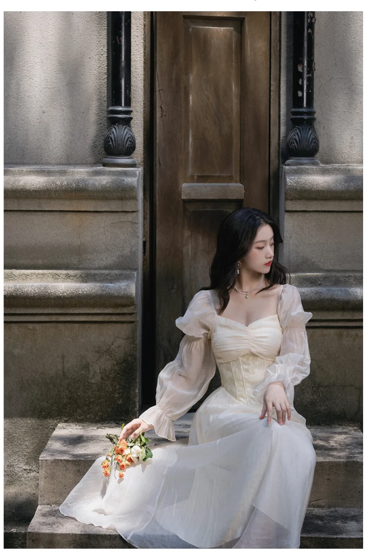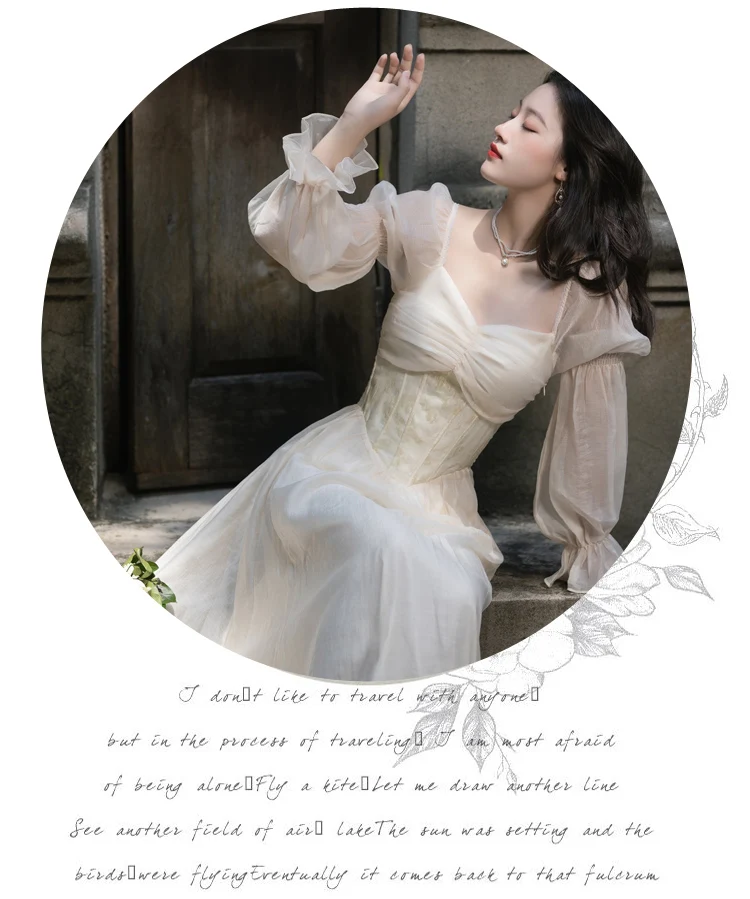 flowersverse Back to school Vintage Chic Woman Fairy Dress Romantic Retro French Style Jacquard Floral Flare Sleeve Royal Princess Dresses Vestido Festa