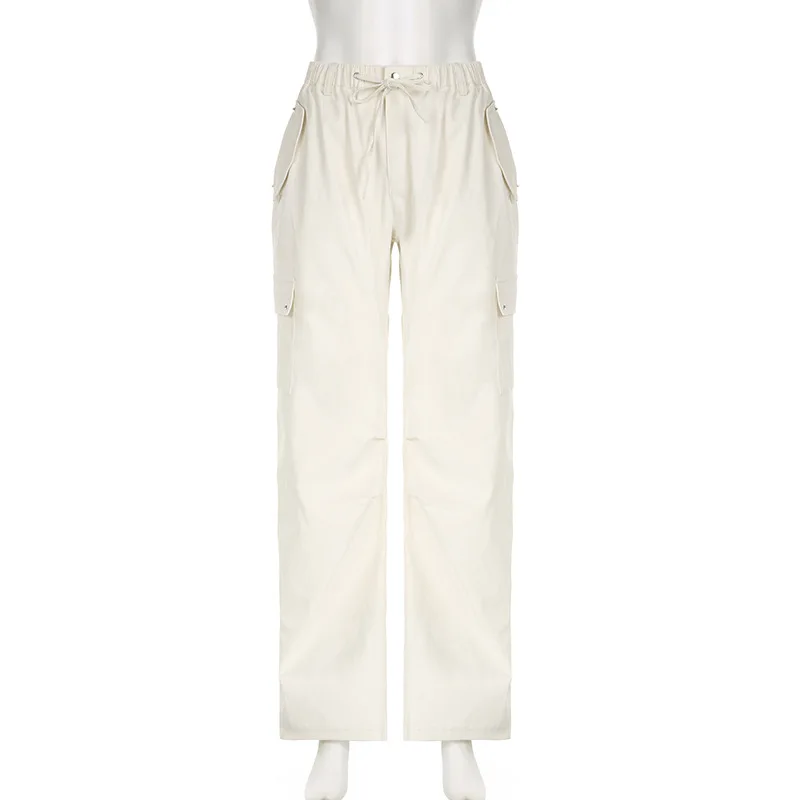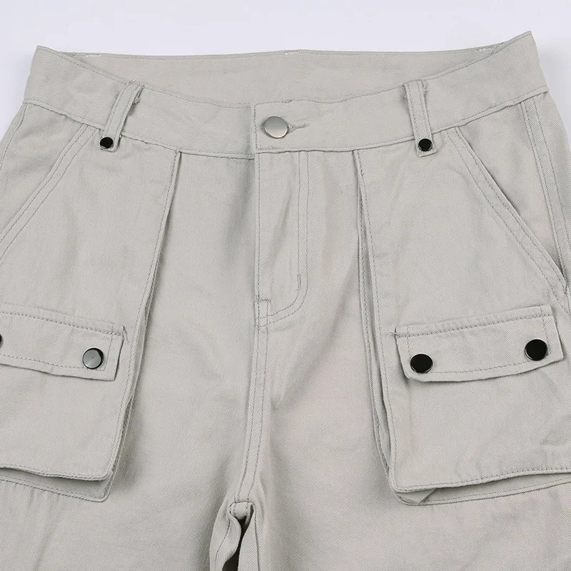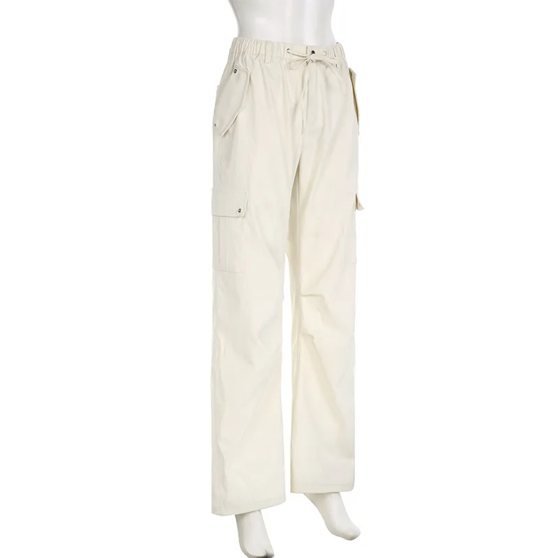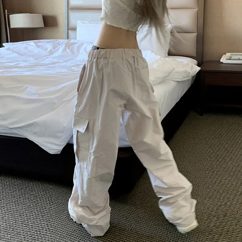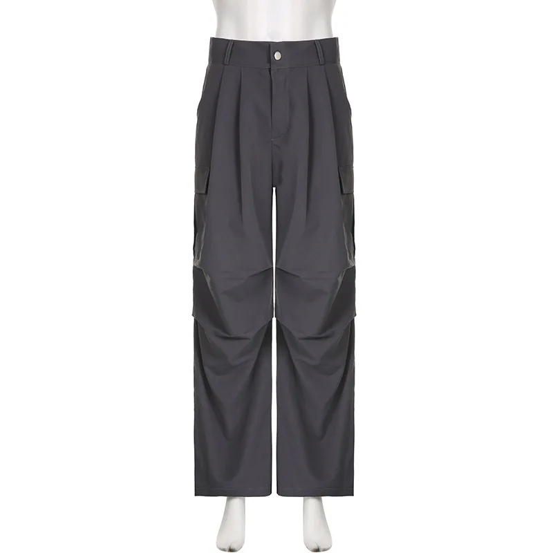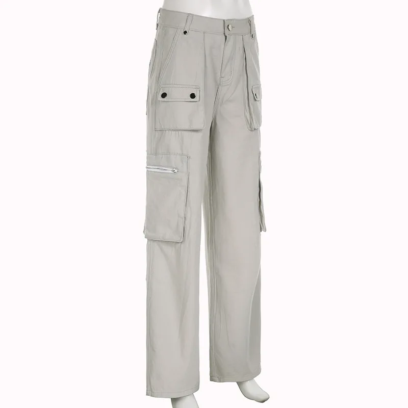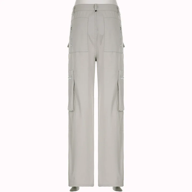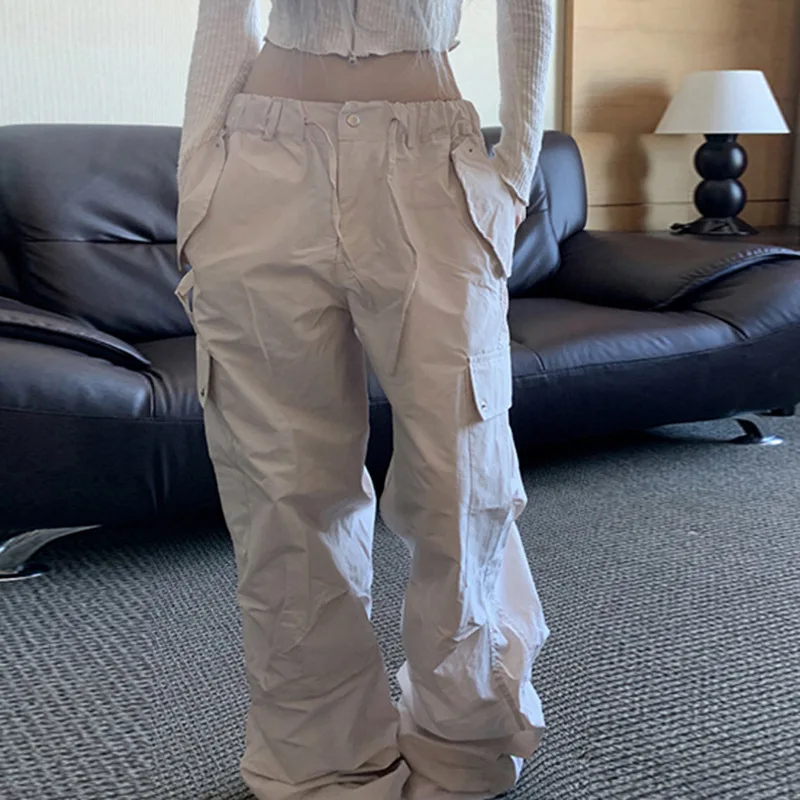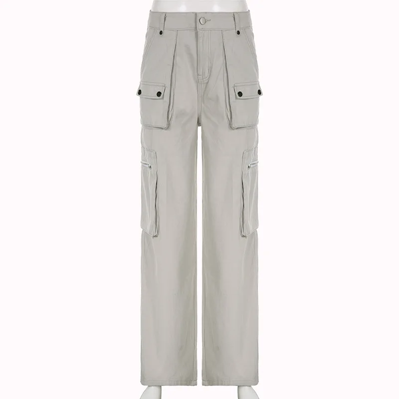 Vintage Y2k Womens Cargo Pants Low Waist Baggy Streetwear Pocket Fashion Trousers Chic Solid Button Female Pants