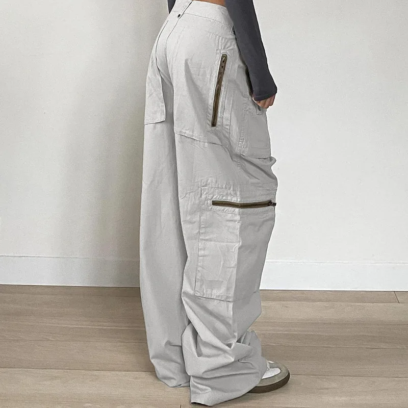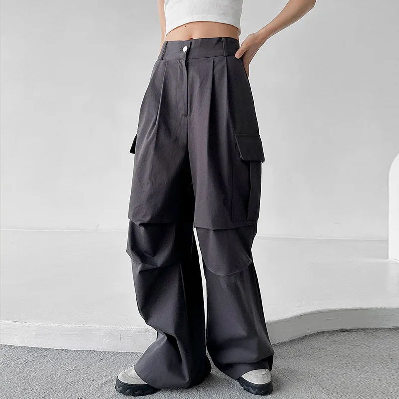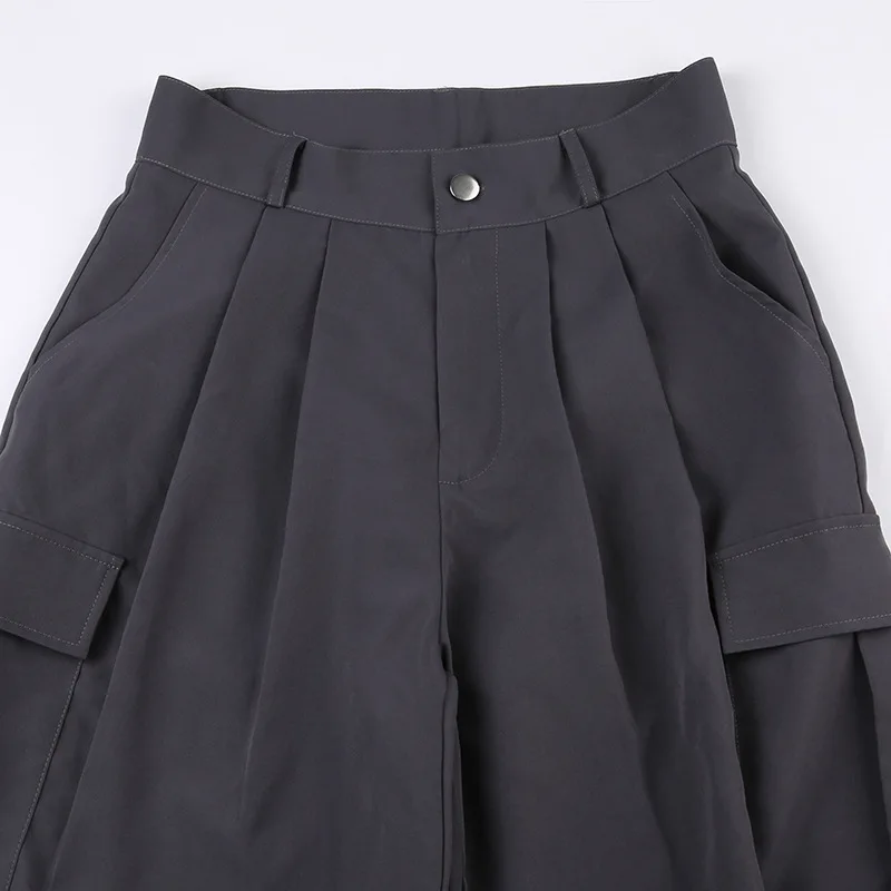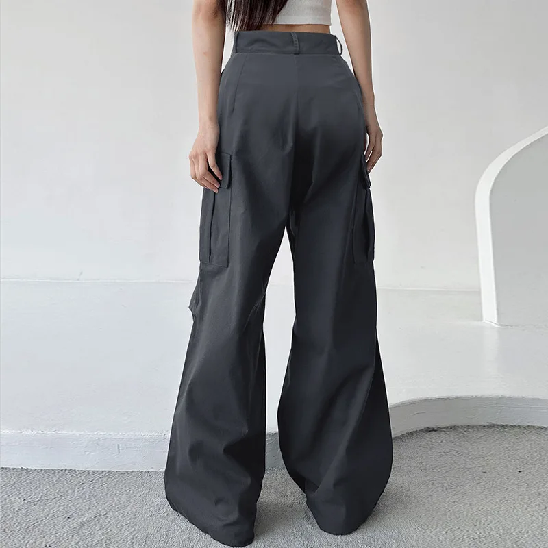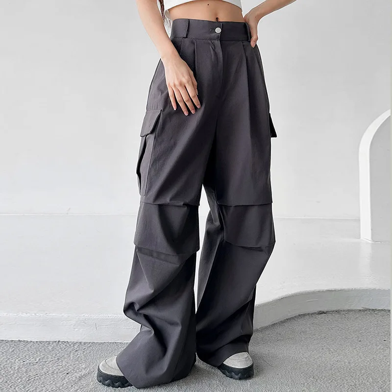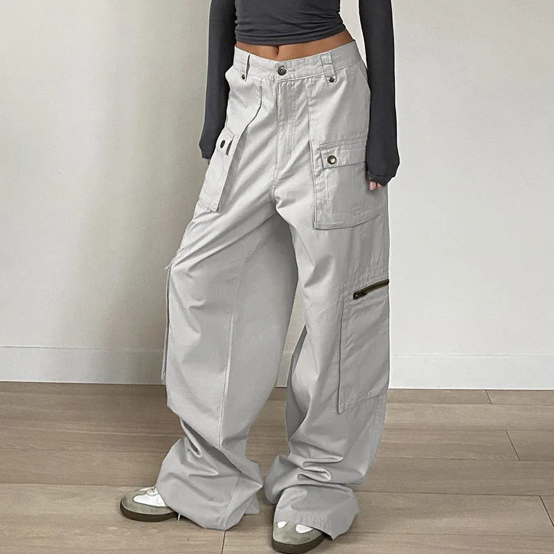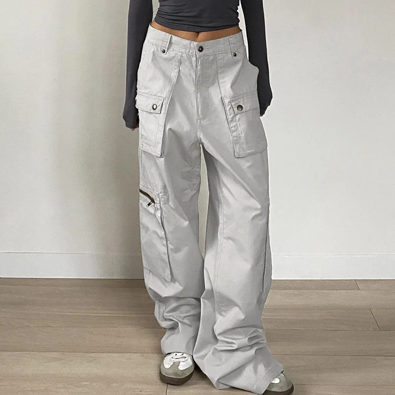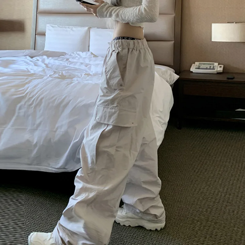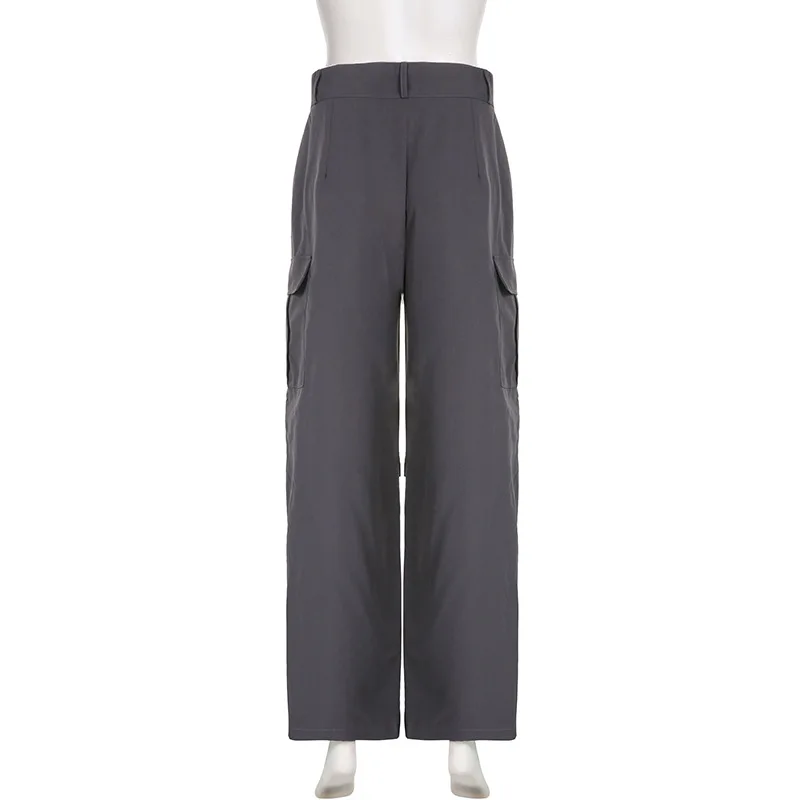Vintage Y2k Womens Cargo Pants Low Waist Baggy Streetwear Pocket Fashion Trousers Chic Solid Button Female Pants