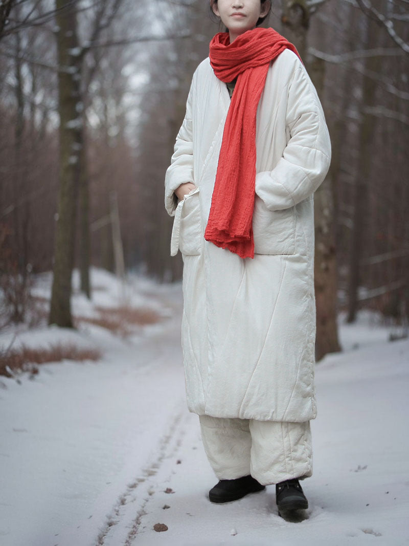 warm autumn and winter literary cotton clothes, mulberry silk cotton blended double-sided wear, soft and comfortable medium and long cotton-padded clothes