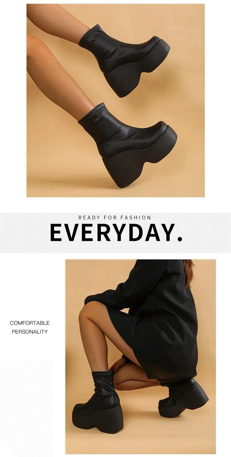 Christmas Gift Women Boots Chunky Platform Woman Ankle Boots Fashion Shoes Casual Slip On Short Boots Ladies Black Boots Female