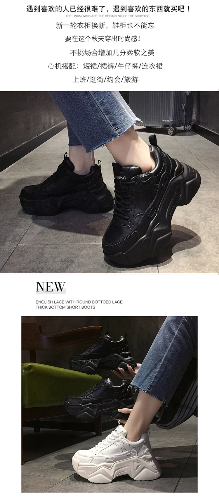 flowersverse Women Platform Sneakers Leather Casual Ladies Chunky Shoes White Woman High Black Fashion Brand Thick soled Wedge Sneakers