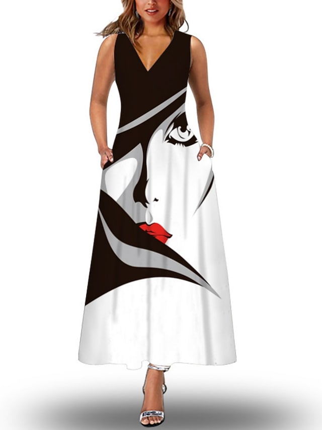 flowersverse Women's Long Dress Maxi Dress Casual Dress Shift Dress Print Dress Floral Butterfly Peacock Fashion Casual Daily Going out Beach Print Sleeveless V Neck Dress Loose Fit Black White Light Green Spring
